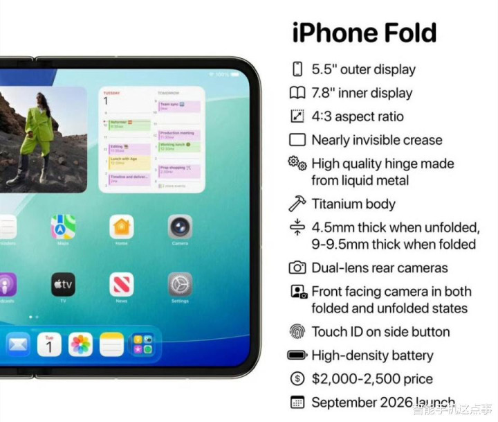 据供应链东谈主士披露,富士康已为这款建立搭建专属坐蓐线,屏幕由三星独家供应,展望2026年秋季发布,售价约2000好意思元。